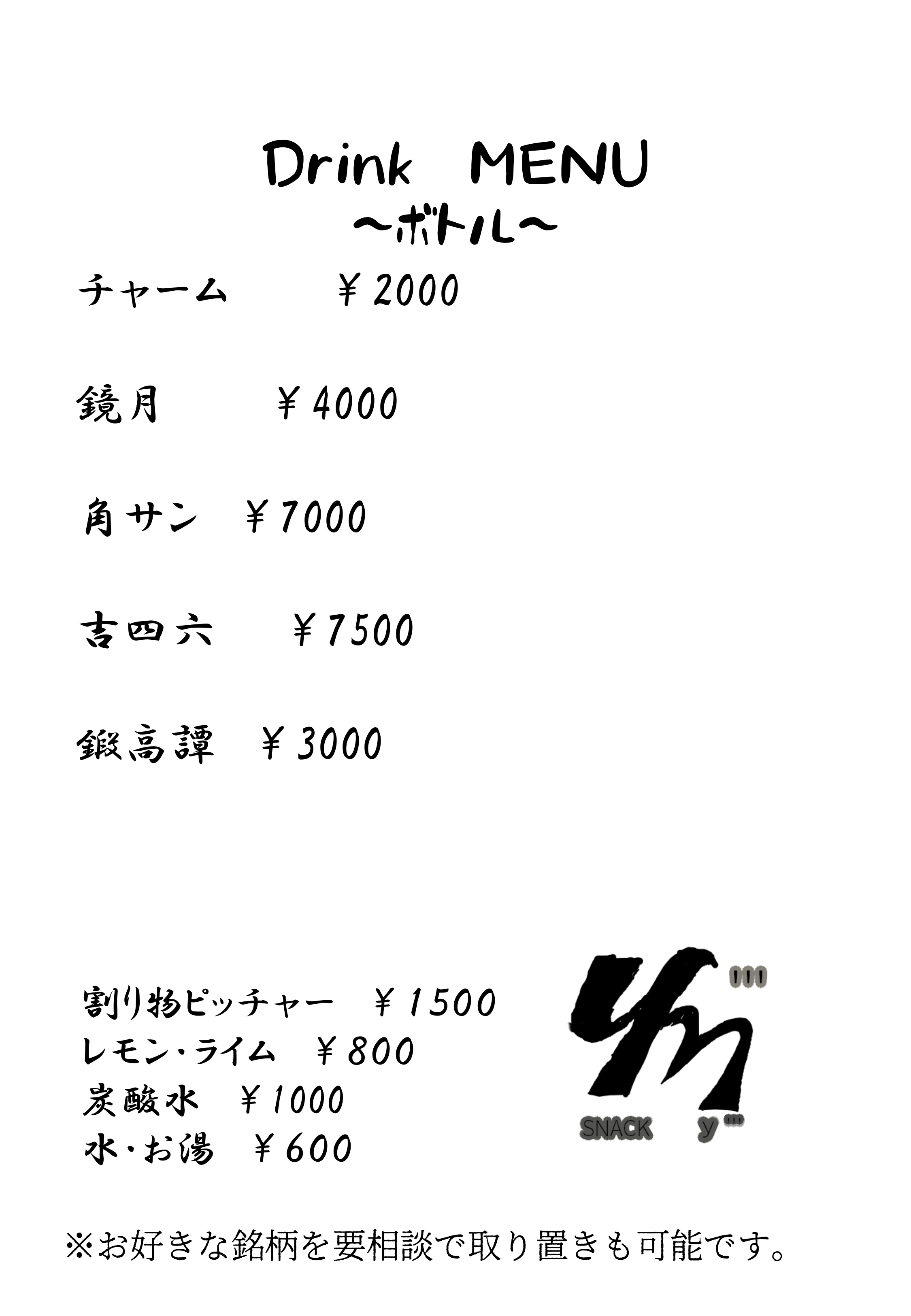 ボトルメニューの取り扱い一覧になります。